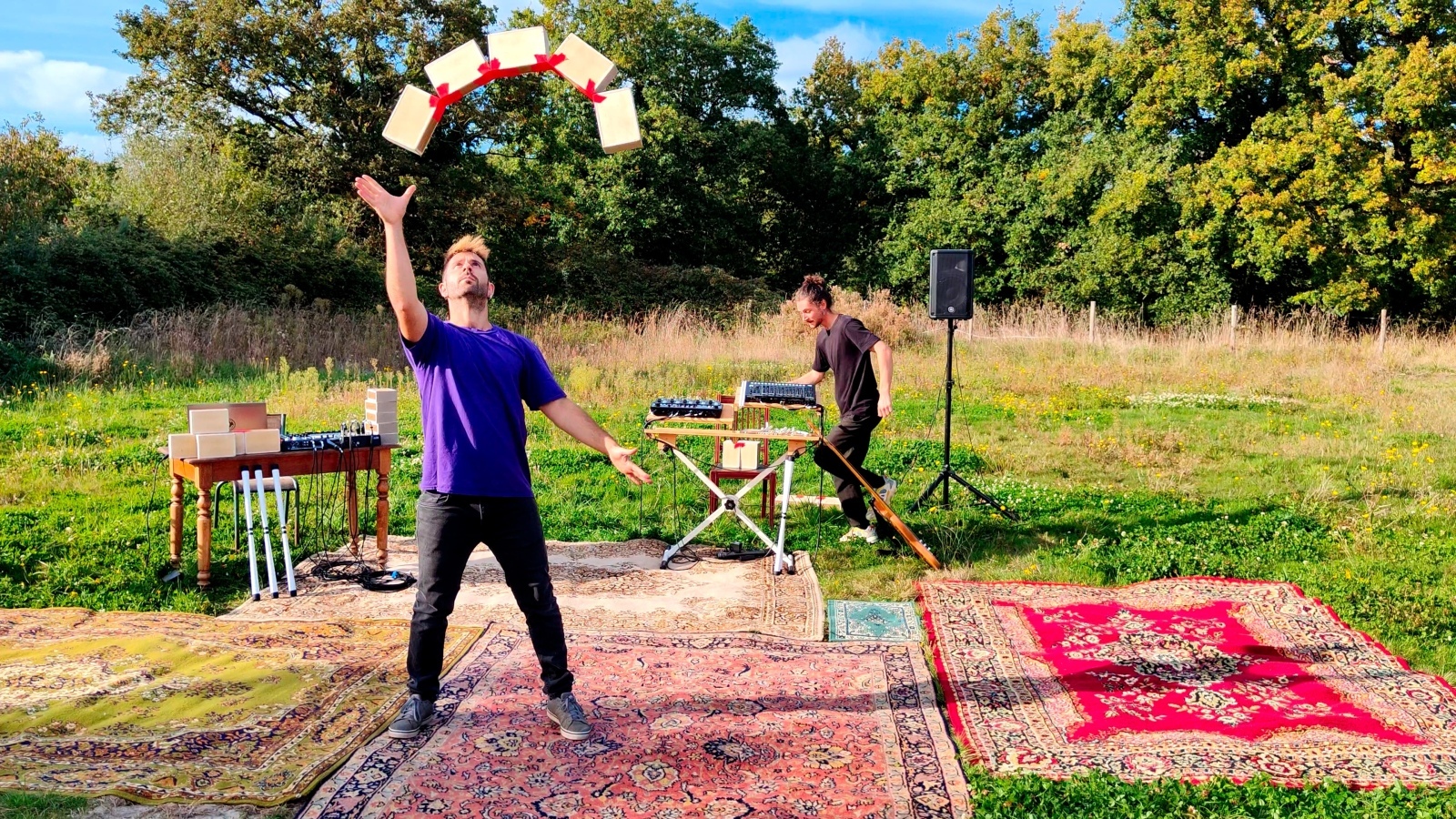 Extrait du spectacle travaillé pendant la semaine et discussion avec la compagnie ● Jonglage